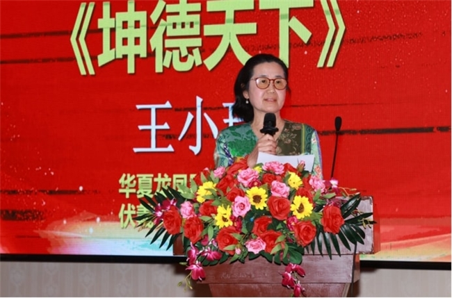 著名爱国华侨华夏龙凤国学文化院伏羲文化研究院院长王小瑞女士精彩主旨演讲,主题《坤德天下》,并代表《凤华书院》创始院长章小影女士宣读了华夏龙凤国学文化院凤华书院的揭牌致辞。