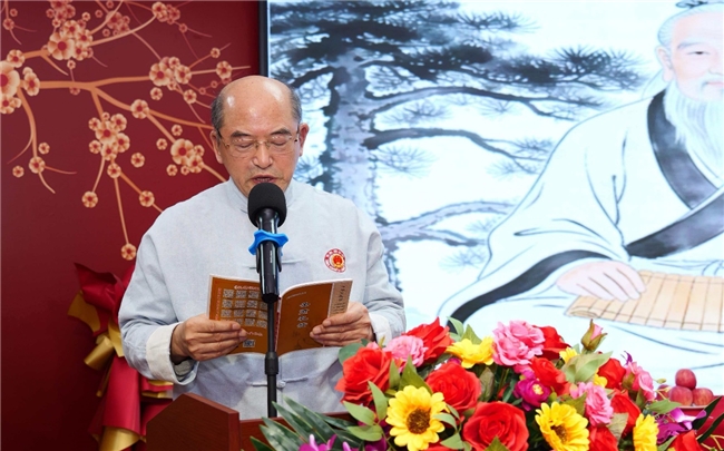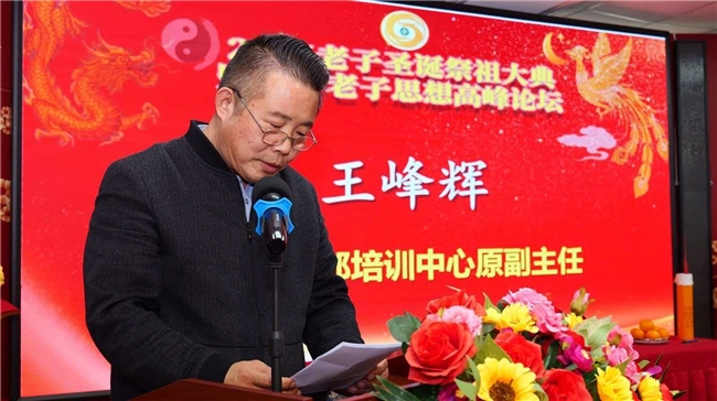 中央统战部培训中心原副主任王峰辉致辞,围绕传统文化与社会治理融合,分享老子智慧在和谐社会建设中的实践路径。
