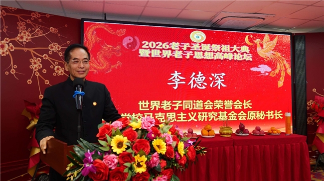 世界老子同道会荣誉会长、中央党校马克思主义研究基金会原秘书长李德深致辞,立足文化传承与理论研究,强调老子智慧对筑牢文化自信、推动文明交流的重要作用。