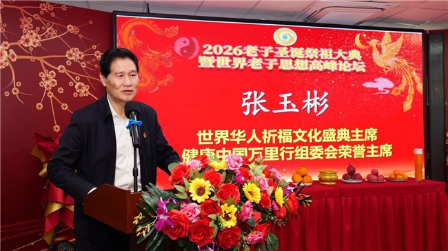 世界华人祈福文化盛典主席张玉彬致辞,聚焦全球华人文化认同,提出以老子思想凝聚海内外华人精神力量。