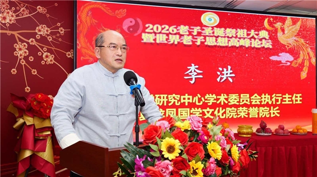 华夏龙凤国学文化院荣誉院长李洪发表主旨演讲,阐述国学研究与老子思想传承的紧密关联,为传统文化现代化发展指明方向。