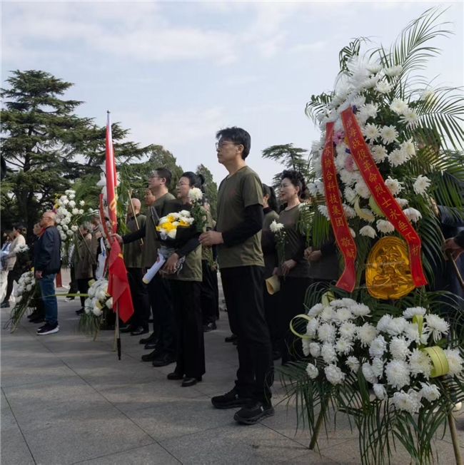 标题:军地文工团联合江苏协合科技集团共赴淮海战役烈士纪念塔,开展祭扫瞻仰与红色研学活动